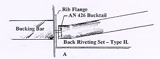 Retour rivetage est une méthode de mise en rivets, généralement dans un composant de la peau, par la suppression de la queue Buck avec un pistolet spécial mis en chasse d'eau tandis que la tête est bien appuyée dans sa fossette évier ou du comptoir par une plaque en acier ou tron?onnage bar.